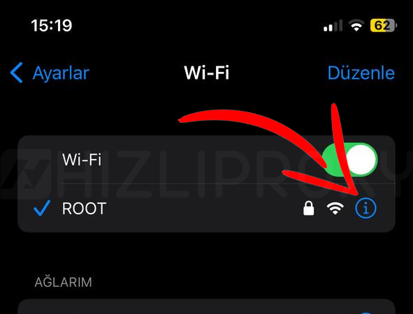 Ağın yanında mavi renkte bir "i" harfi simgesi göreceksiniz. Bu simgeye dokunun.