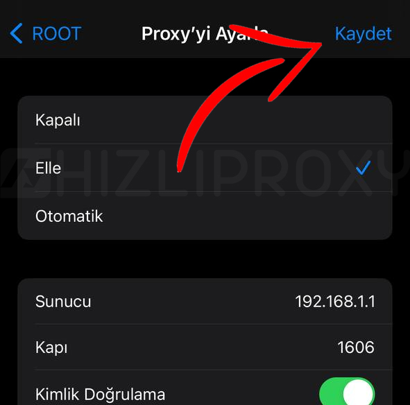- Proxy ayarlarınızı doğru bir şekilde girdiğinizden emin olduktan sonra, ekranın üst kısmındaki "Kaydet" düğmesine dokunun.