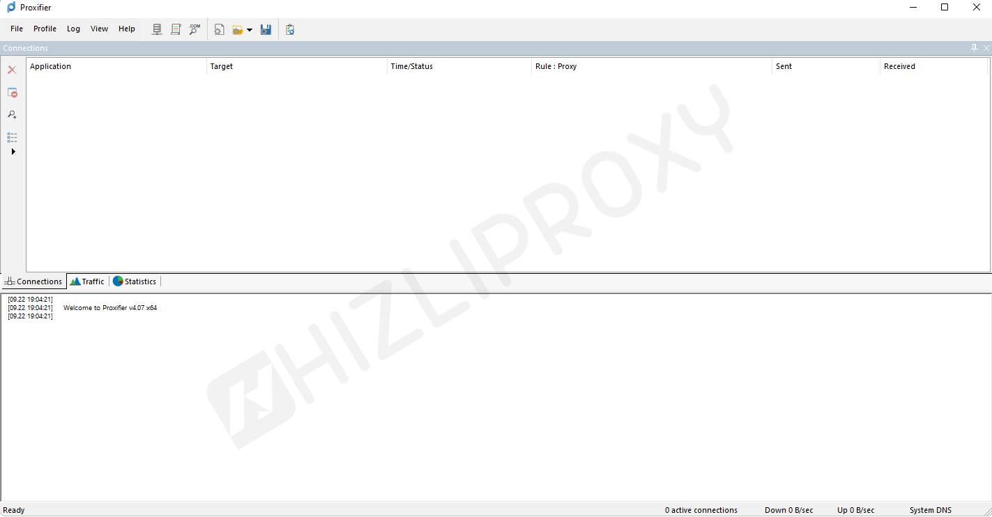 Adım 2: Proxifier'ı Başlatın Kurulum tamamlandıktan sonra Proxifier'ı çalıştırın. Program açıldığında ana pencere görüntülenecektir.