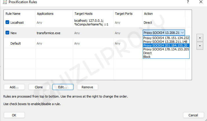 - Ayarları doğruladıktan sonra "OK" düğmesine tıklayarak proxy sunucusunu ekleyin.